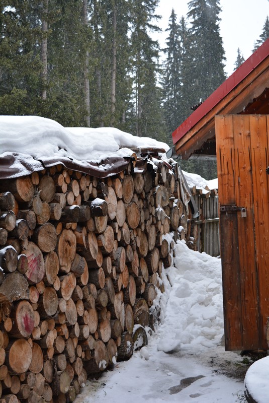 Cabana este înconjurată de pădure de răşinoase.